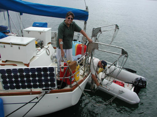Judi & Ron (Palio) getting ready for a dinghy ride (7/04)