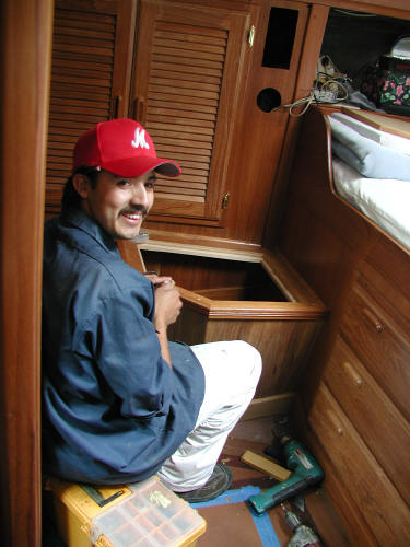 Fiberglass work on cockpit bulkhead to fit new instruments, which are shaped different than the old ones.