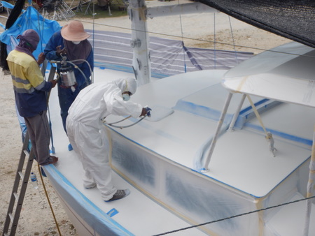 Jimmy's crew sanded the bottom and applied two more coats of Jotun Seaforce
